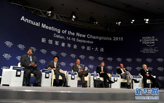 9月14日,世界經濟論壇2011年新領軍者年會(第五屆夏季達沃斯論壇)舉行“變革性創新”專題會議。 新華社記者 李鋼攝