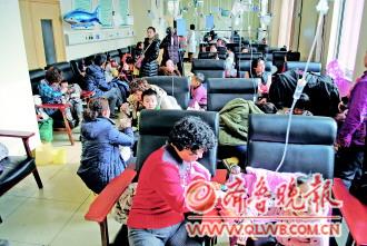 近日氣溫變化大,小兒感冒患者激增。14日上午,記者走訪市區婦幼、市立及四〇四醫院兒科門診了解到,此次流感多為病毒性感冒,患兒有突發高燒癥狀。上午10點,婦女兒童醫院值班護士介紹,近兩日到小兒內科就診的患兒日均200余人,急診輸液室也坐滿了輸液的幼兒,“每天得給100多名孩子輸液”。