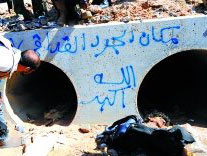 執政當局士兵手持繳獲的卡扎菲鍍金手槍慶祝。利比亞執政當局士兵圍觀卡扎菲藏身的下水道。據新華社電 利比亞“全國過渡委員會”20日確認,穆阿邁爾卡扎菲在家鄉蘇爾特落入執政當局武裝之手,最終傷重不治。