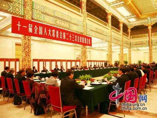 中國網:受吳邦國委員長的委托,聯組會議由全國人大常委會副委員長華建敏主持。2011-10-27 08:59:54