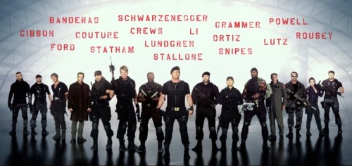 《敢死隊3》可謂把全球硬漢明星一網打盡,西爾維斯特·史泰龍、阿諾·施瓦辛格、杰森·斯坦森、李連杰、梅爾·吉布森、哈里森·福特、安東尼奧·班德拉斯、凱南·魯茲、韋斯利·斯奈普斯等人全被網羅在內。不過他們在一起工作的時間并不長。李連杰只拍攝了幾天, 泰瑞·克魯斯工作了一周,施瓦辛格差不多一周多時間,不過這不算少,第一部,施瓦辛格只拍了半天,第二部也就四天。