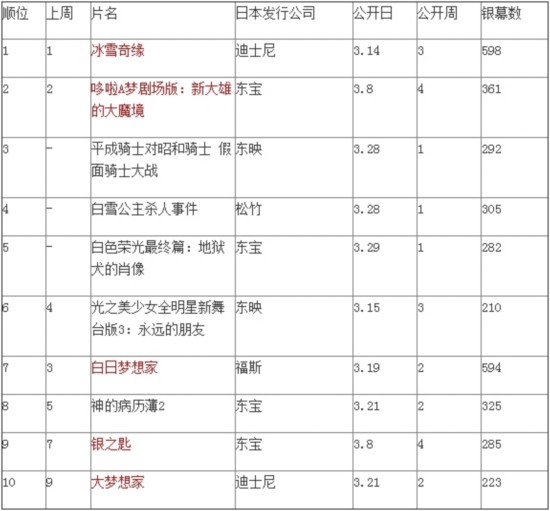 日本周末票房排行榜:2014年3月22日-3月23日(排行來源:興行通信社)