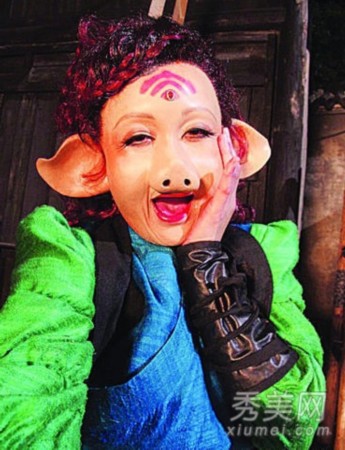 “香港第一女笑星”吳君如在《大內(nèi)密探靈靈狗》片中所扮演的西宮娘娘,有黑衣忍者、非洲土著、香腸嘴、長(zhǎng)發(fā)女鬼等多種怪異丑女造型。