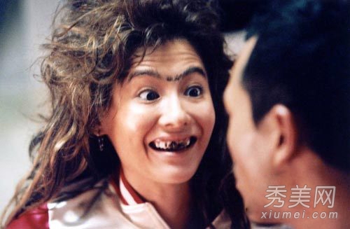 作為1994年加拿大蒙特利爾小姐冠軍的湯盈盈,在《阿旺新傳》中扮演滿臉麻子、滿口齙牙的李笑好。看看就知道,這個(gè)扮相丑不丑。