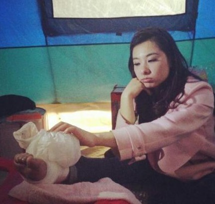 照片中劉璇一臉傷心,腳部浮腫很明顯,腫過饅頭。