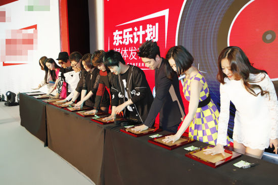 作為“東樂計劃”發布會上的最大亮點,金貴晟的登臺十分驚艷。不久前唱紅熱播影視劇《愛情公寓4》插曲《虹之間》的他也作為索尼音樂娛樂2014年度力推的唱作才子身份加入這場活動。由于《虹之間》奇跡般的蟬聯國內某重量級音樂平臺內地榜13周冠軍,已經問鼎當之無愧的大滿貫霸業,他一出場便成為大家關注的焦點,眾多到場媒體和唱片公司高層向金貴晟表達祝賀,同時也恭喜索尼音樂娛樂能夠在2013年打造出這樣一員強將。金貴晟表示《虹之間》所取得的成績離不開公司的保駕護航以及《愛情公寓4》總導演韋正的賞識。對于當天的“東樂計劃”,金貴晟則表示很榮幸能加入京東“東樂計劃”,希望未來也有機會和京東合作拍攝新作品的MV。發布會的最后,金貴晟和當天到場的大張偉、姚貝娜、曹軒賓、許藝娜、王矜霖、毛妮卓瑪、好妹妹樂隊等十幾位歌手一同在現場按下了手膜作為留念,共同祝愿“東樂計劃”完美成功。