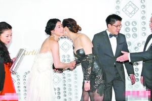 4月25日,韓星李英愛以一身“大長今”造型現(xiàn)身香港某品牌活動(dòng)晚宴,同場焦點(diǎn)還有兩位漂亮媽媽郭晶晶和徐子淇。千億媳婦徐子淇以一身黑色透視抹胸裙亮相,與郭晶晶同臺(tái)合照,貼面問候,兩人非常親熱。