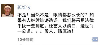就在網絡謠言四起之際,李小璐的經紀人郭先生在朋友圈否認,“眼睛都怎么長的,如果有人繼續誹謗造謠,我們將采用法律手段一查到底,還藝人以清白,送世間一公道。做人,請厚道!”