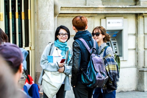 輪值導游許晴帶領大家在巴特洛之家排隊,小有成就的許晴看上去很開心