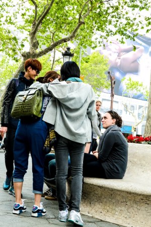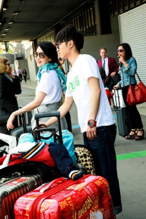 總領館工作人員熱情擁抱李菲兒跟花少團告別