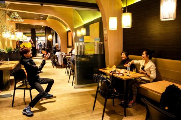 隔空拋物,張翰在咖啡店開心逗大姐四姐