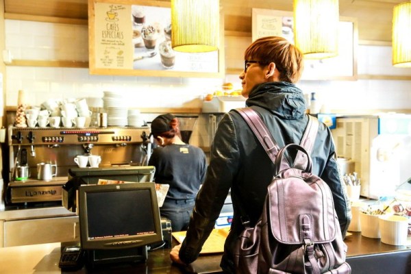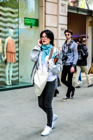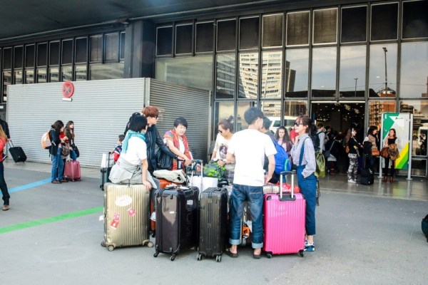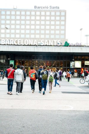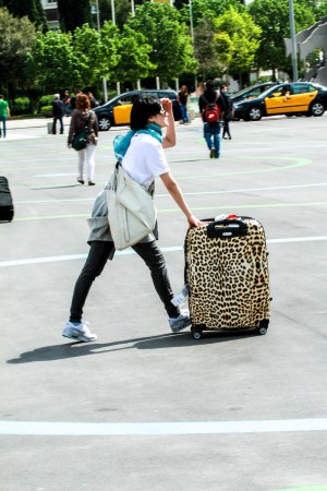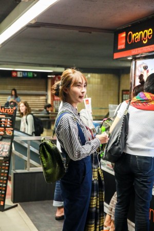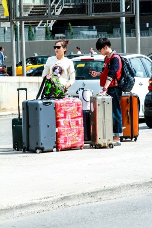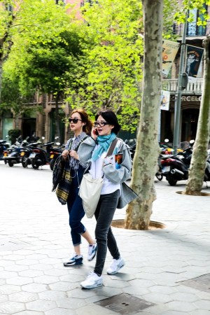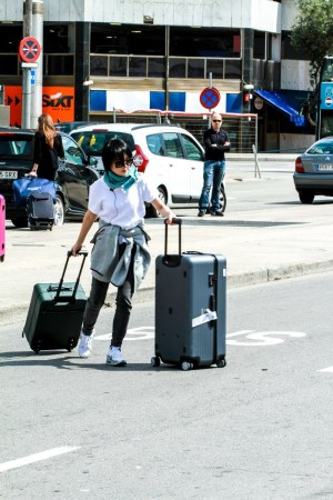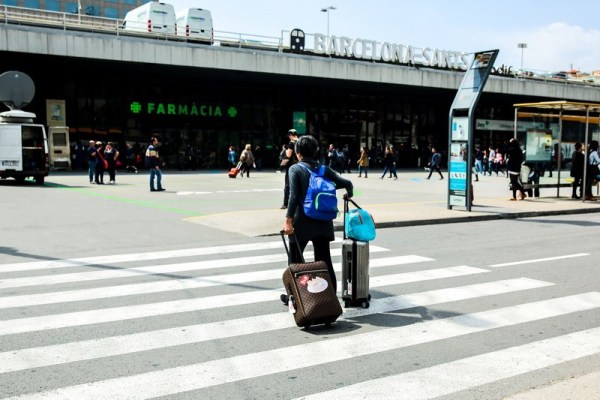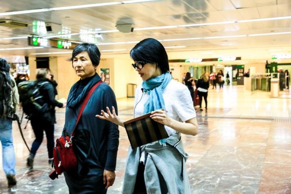 即將轉場去馬德里,佩佩姐一馬當先拿行李進火車站
