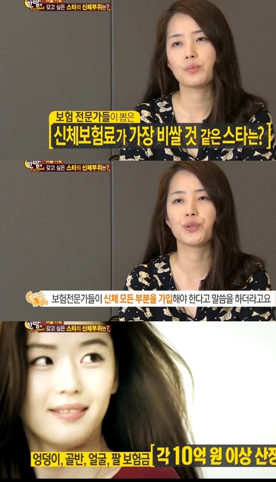 昨晚(7月2日)播出的韓國SBS TV節目《晚間TV演藝》公開了明星們的身體保險金額,演員全智賢被爆全身保險超過百億韓幣(約6156萬人民幣)。