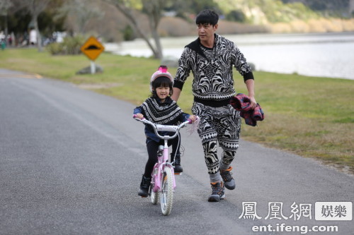 此次新西蘭之旅,陸毅和貝兒在新西蘭毛利傳統(tǒng)家庭中做客。當(dāng)時(shí)幾個(gè)大孩子在一旁玩山地車,貝兒看到覺得十分好玩,也想體驗(yàn)一把。剛開始老爸陸毅并不同意,因?yàn)橹柏悆航佑|過的自行車后面都有兩個(gè)小輪子保持平衡,不會(huì)跌倒,但這邊可是貨真價(jià)實(shí)的山地車。但看著當(dāng)時(shí)其他孩子要么騎車要么劃船,貝兒一個(gè)人在那兒有點(diǎn)兒孤零零的,就心軟了:“貝兒,爸爸教你騎車吧。”陸毅開始扶著自行車教貝兒騎車要領(lǐng),一點(diǎn)點(diǎn)保持平衡,誰料五分鐘之后,從一條直路往返時(shí),陸毅已經(jīng)可以撒手不扶了:“我那天中午真的很為貝兒驕傲,真的五分鐘就會(huì)了,我在背后看她越騎越好,越騎越遠(yuǎn),我真的好為她高興”,不過陸毅還順帶夸贊自己在《爸爸去哪兒》中始終保持的長(zhǎng)腿家族優(yōu)勢(shì),“貝兒的運(yùn)動(dòng)天賦這么好,我想是遺傳吧。”