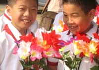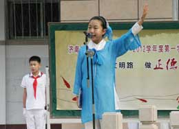 “學做人,講文明,禮儀之邦人知曉。樹校風,強校紀,正德文明記心里!遍_學第一...