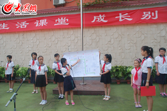 在開學(xué)典禮上,棋盤街小學(xué)高年級同學(xué)與大家一同分享自己的暑期實踐成果