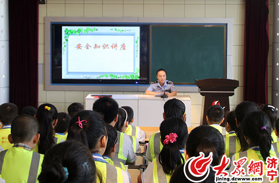 濟寧交警支隊任城區大隊的民警為學生進行交通安全知識講座