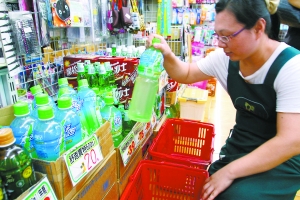 5月26日,臺灣高雄市一家賣場的工作人員將運動飲料下架