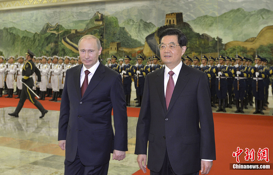 胡錦濤舉行儀式歡迎俄羅斯總統(tǒng)普京訪華