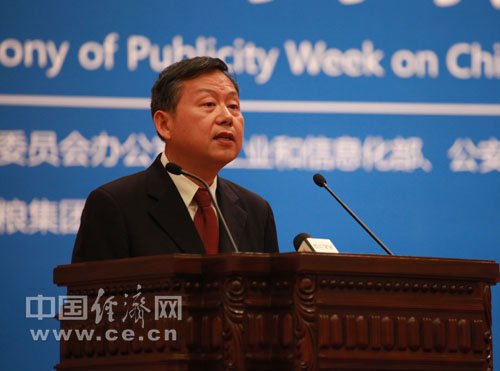 公安部副部長黃明在第三屆中國食品安全論壇上發(fā)言。王笑 攝