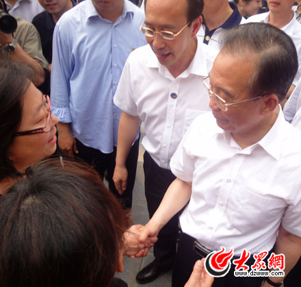 今天上午,中共中央政治局常委、國(guó)務(wù)院總理溫家寶視察了山東省援建的北川巴拿洽商業(yè)步行街。他聽(tīng)取了山東省駐北川工作聯(lián)絡(luò)處負(fù)責(zé)同志的簡(jiǎn)要匯報(bào),然后一路步行,親切看望沿街的群眾。
