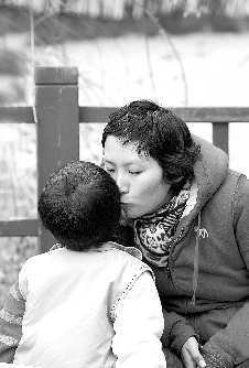 于娟和兒子小土豆親吻。(本人提供)