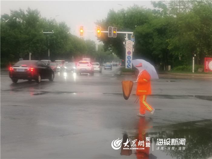 除了楊振軍,記者當天下午還在街頭看到不少環衛工人,他們或是冒雨打傘巡查,或是雨小后繼續工作,他們工作的身影是這雨天最美的一道風景。