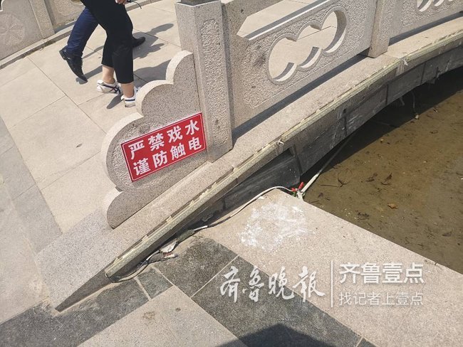 據記者了解,事情發生之后園林中心的領導及時到醫院對男童進行了探望,并對鳳鳴湖的亮化工程進行了全方位的檢查,目前正在維護當中。記者在鳳鳴湖出事的小橋附近水系看到,橋沿處已經貼上了“嚴禁戲水,謹防觸電”的提示牌。