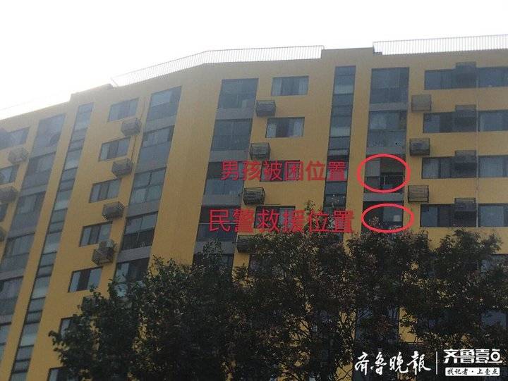 此時,家住濟南市陽光100小區的戚建成正與家人一起準備回家,在路過事發單元門口附近時,他在樓下聽到兩位居民說要趕緊報警,戚建成抬頭一看,發現在八樓的陽臺外竟站著一個小男孩,情況非常危急,他急忙騎電動車趕到出事樓下。